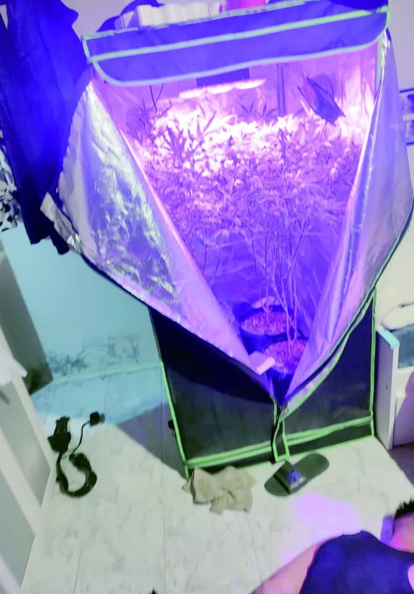 Una vez allí, detectaron dentro de la habitación del imputado un interior con un sistema de luces LED y recubierto con aluminio y, en su interior, plantas de cannabis sativa, como además se constató un patio interno con un invernadero acondicionado con varias plantas de la especie Cannabis Sativa, las cuales superaban 1,50 metros de altura.